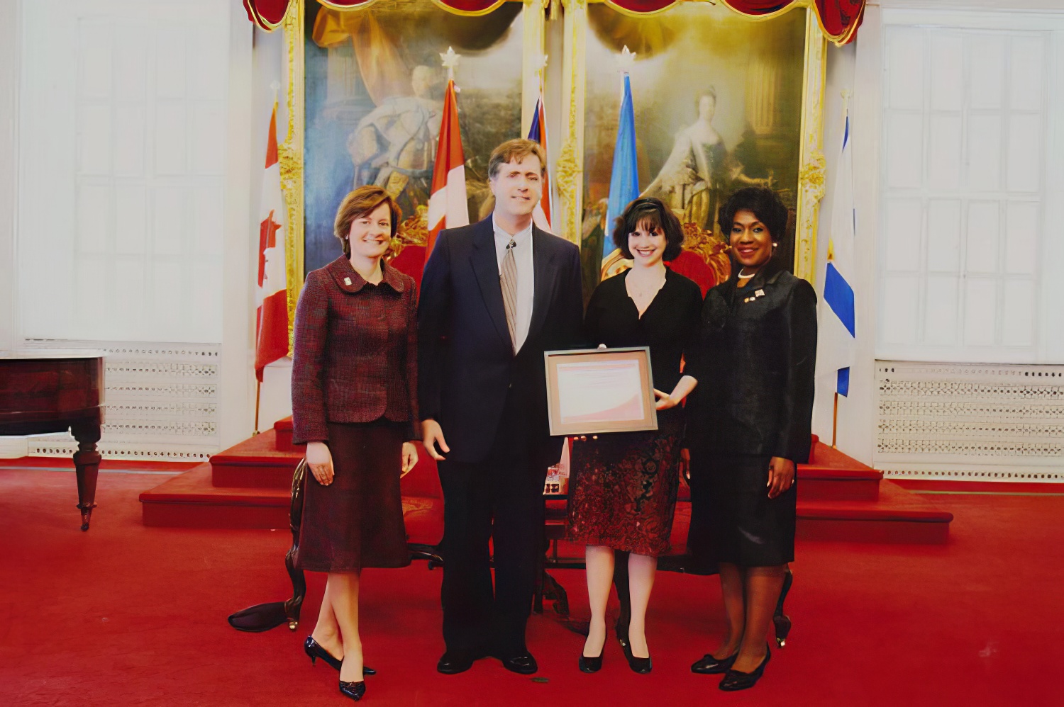 Anne & D'Arcy are shown here receiving the Outstanding Volunteer Award from Nova Scotia's Lieutenant-Governor, Mayanne Francis.